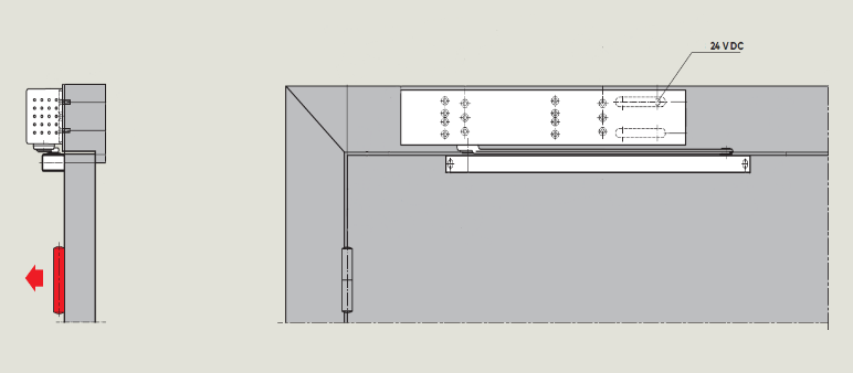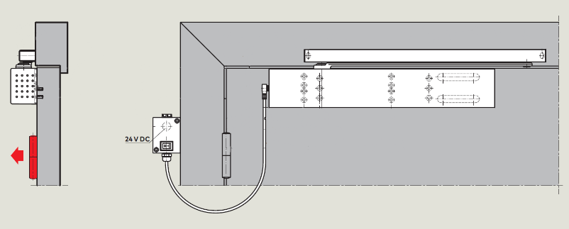 De vrijloopdranger wordt geplaats aan de scharnierzijde van de deur. Waarbij de vrijloopdranger zelf wordt gemonteerd op het kozijn boven de deur en de arm wordt gemonteerd op het deurblad. Deze uitvoering van een vrijloopdranger noemen we ook een vrijloopdranger voor de kopmontage. In deze situatie is een verdeeldoos niet nodig, de stroom kan rechtstreeks op de vrijloopdranger op het kozijn worden aangesloten.